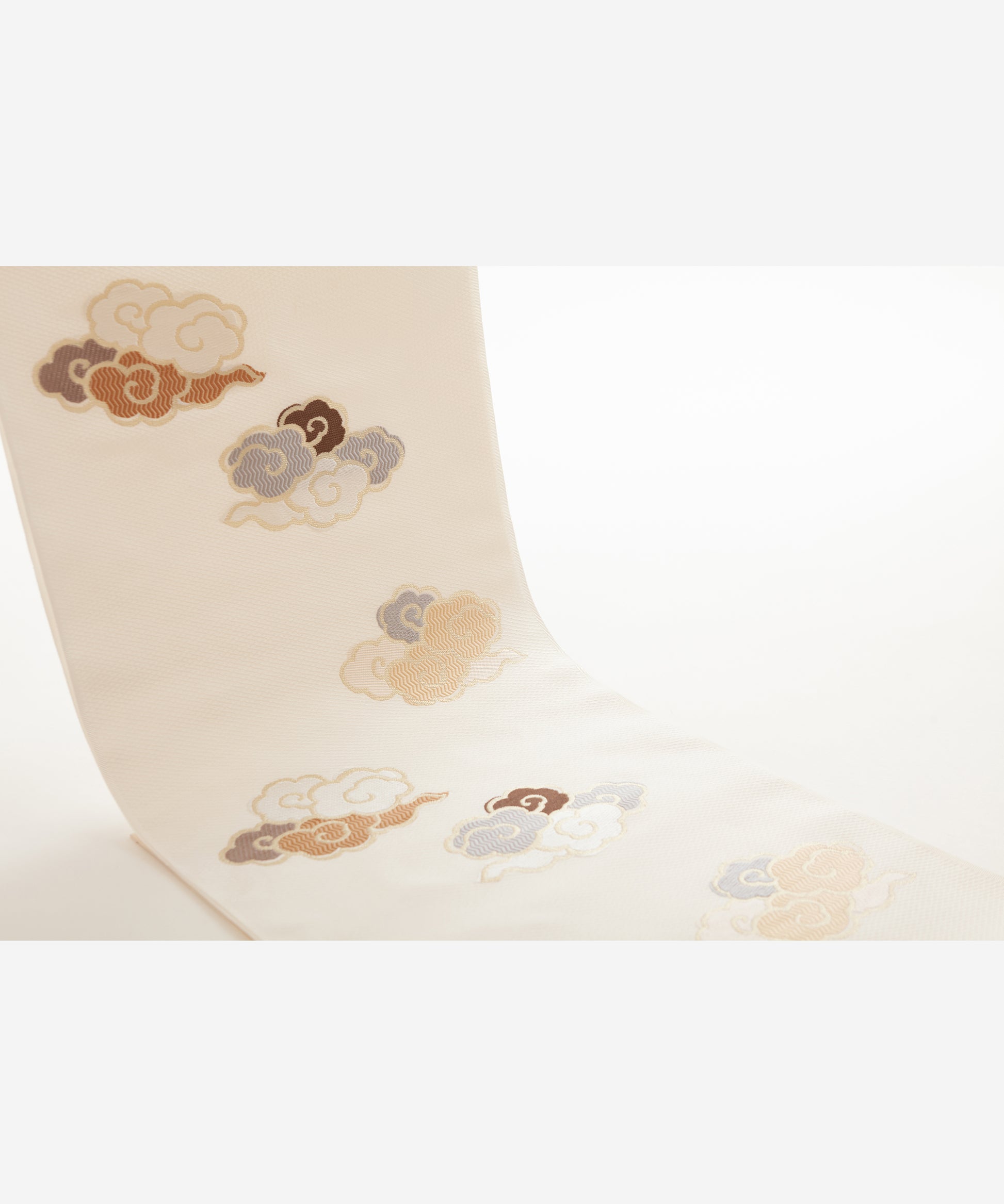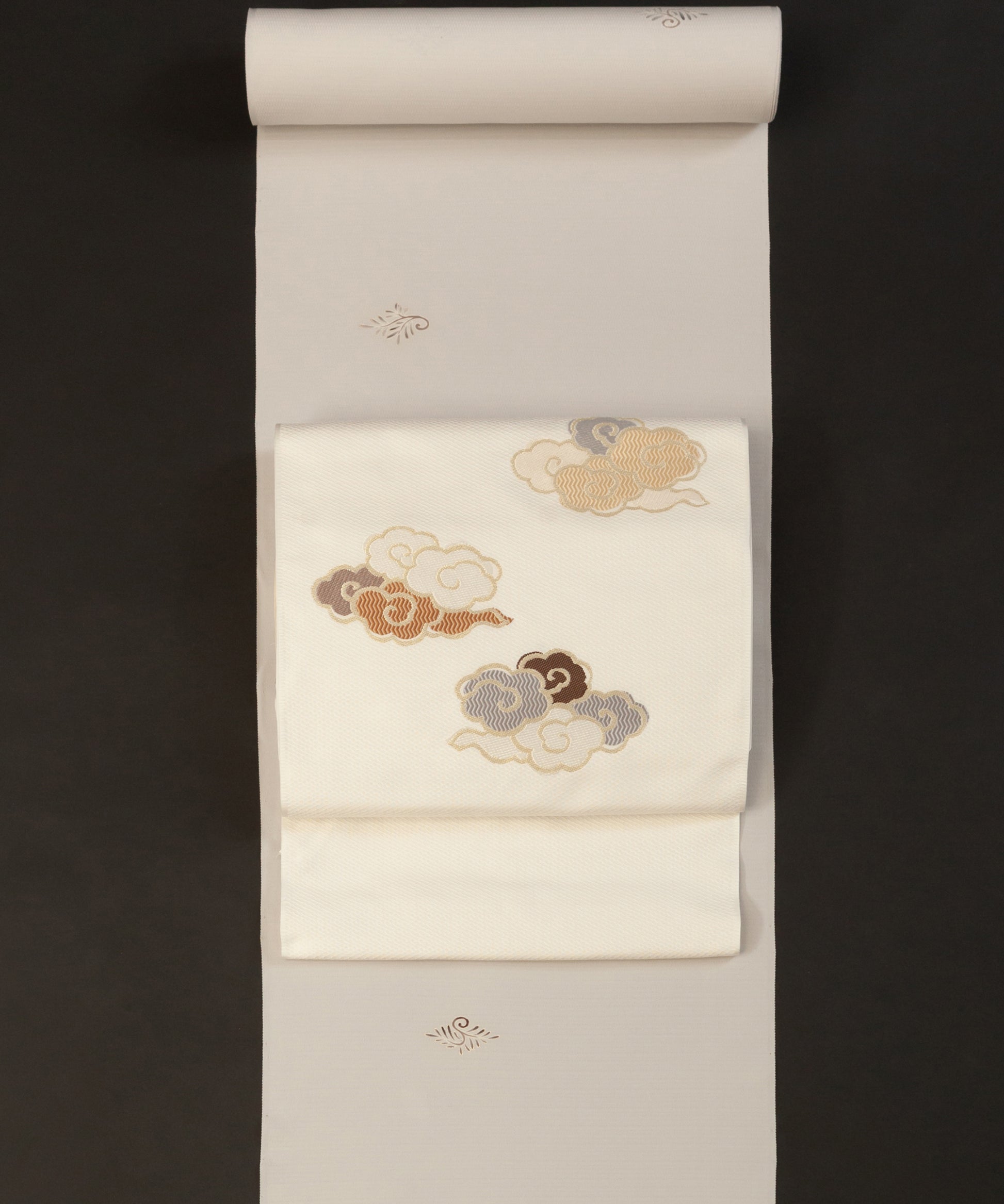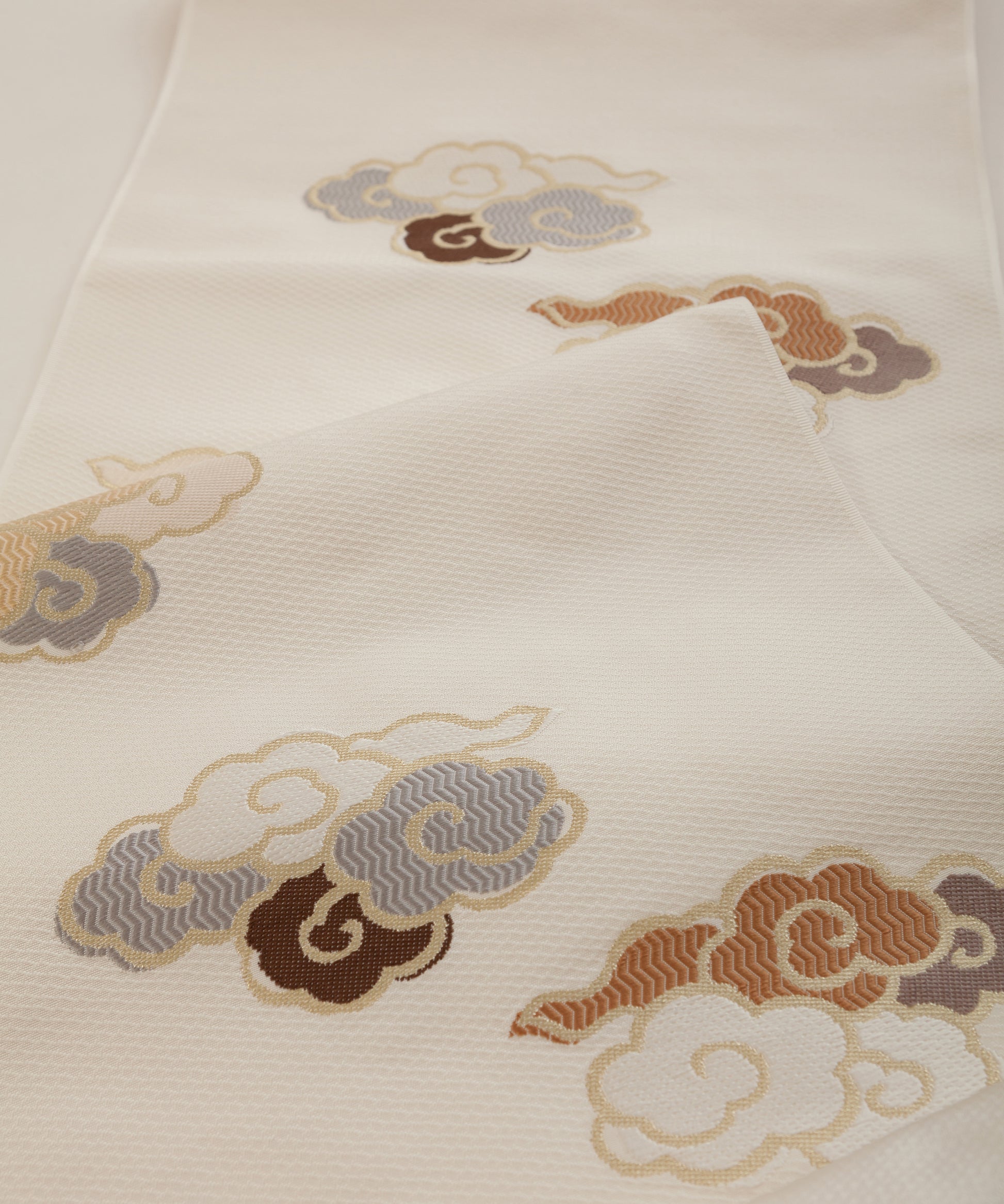 Rakufuurin motif de nuages volants Nagoya obi de neuf pouces