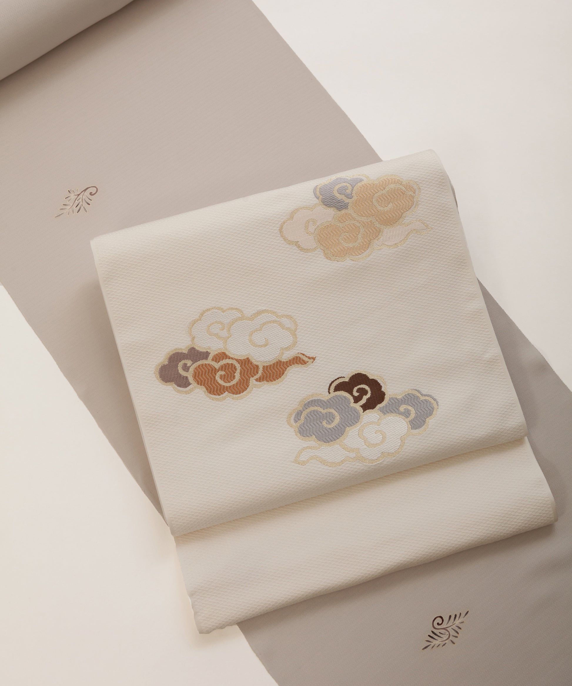 Bien qu'il s'agisse d'un design traditionnel, cet obi Nagoya, nommé Hiunbun, véhicule un sens raffiné et une nouveauté.