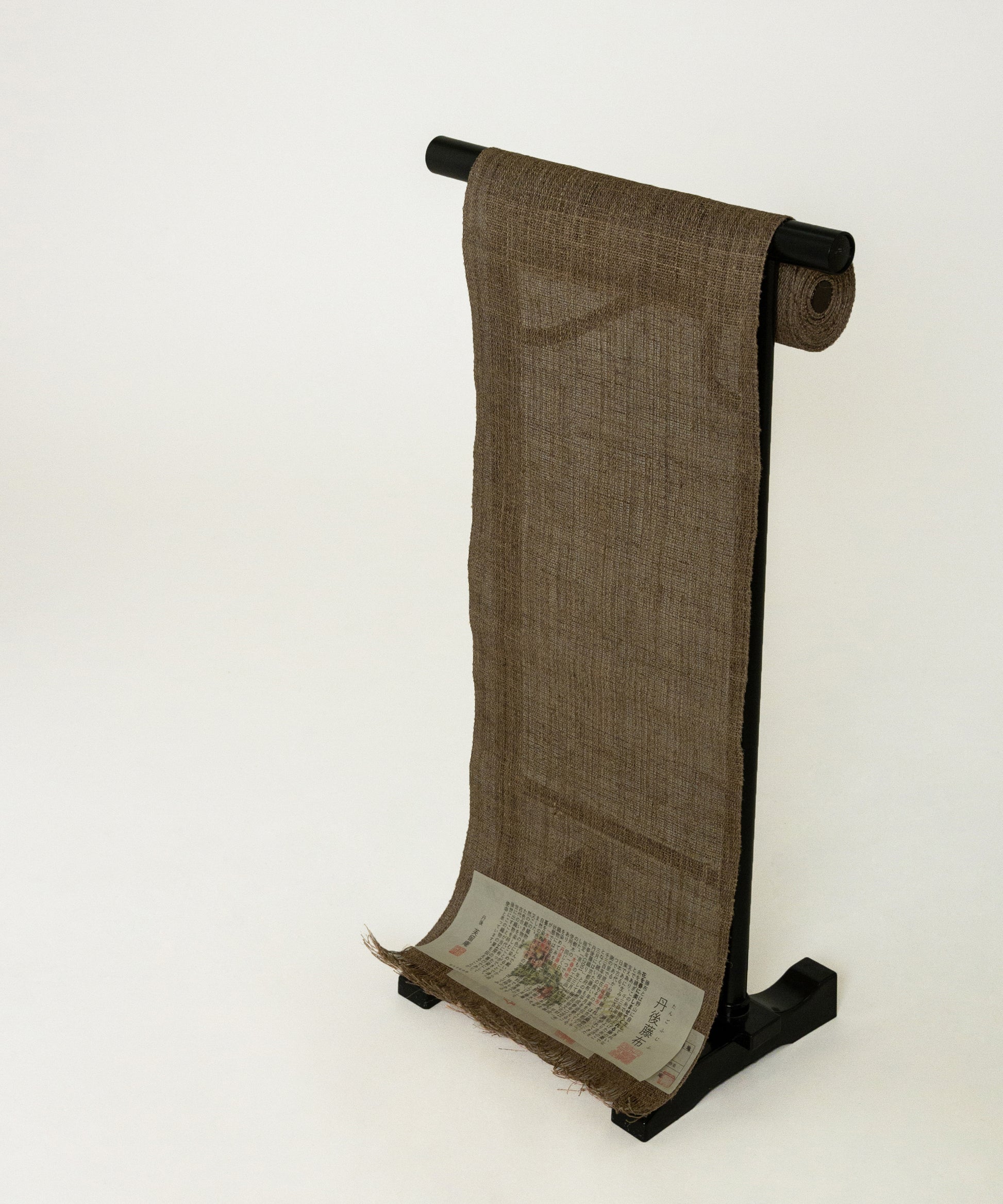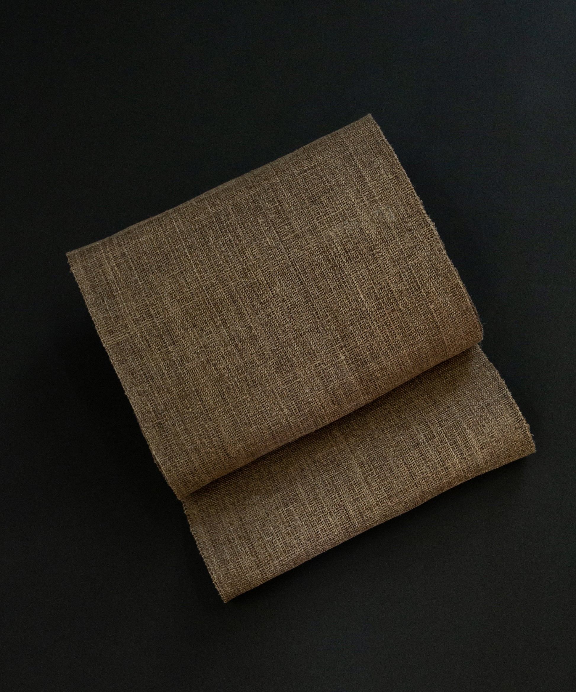 ご紹介させていただくこちらの藤布は、木春無地とよばれる椿の花弁で染められております。自然布ならではの風合いと、深みある色を楽しむことができる作品でございます。