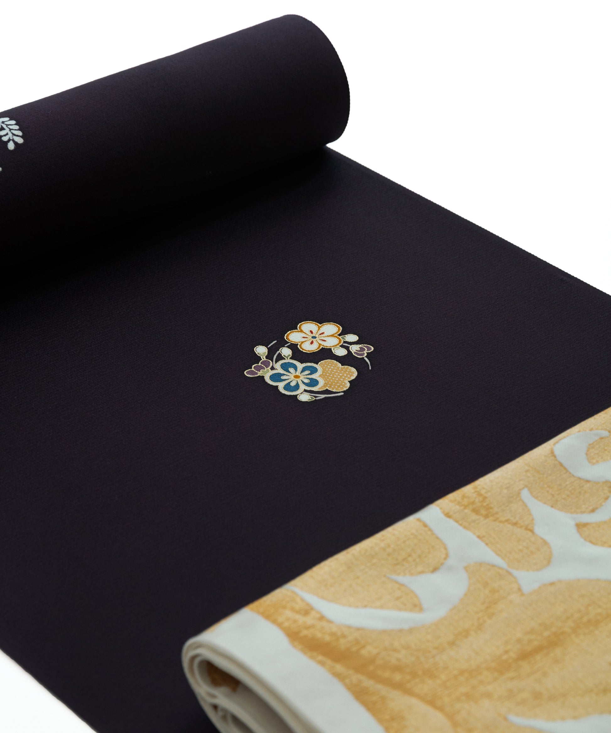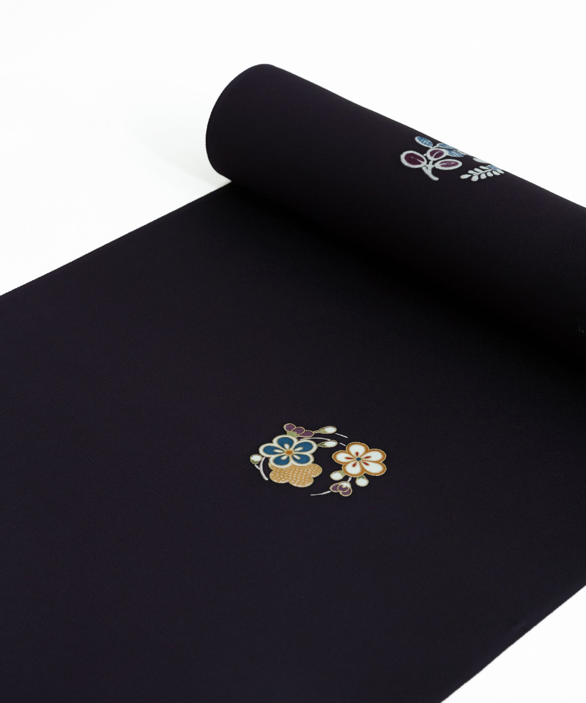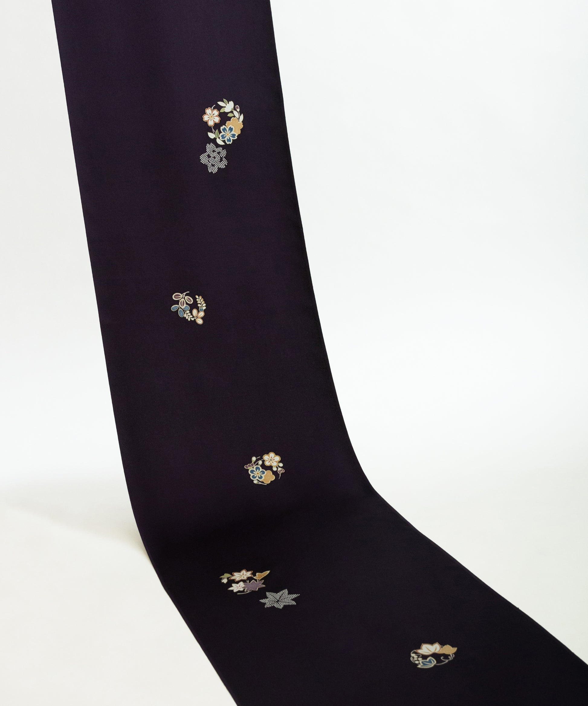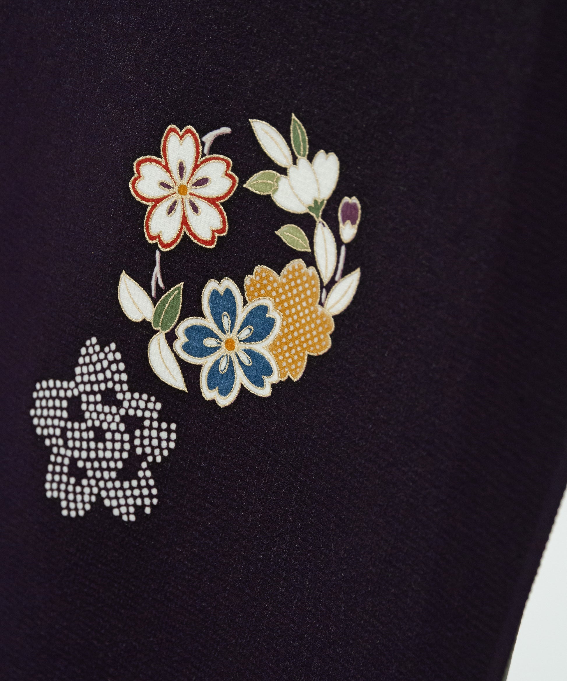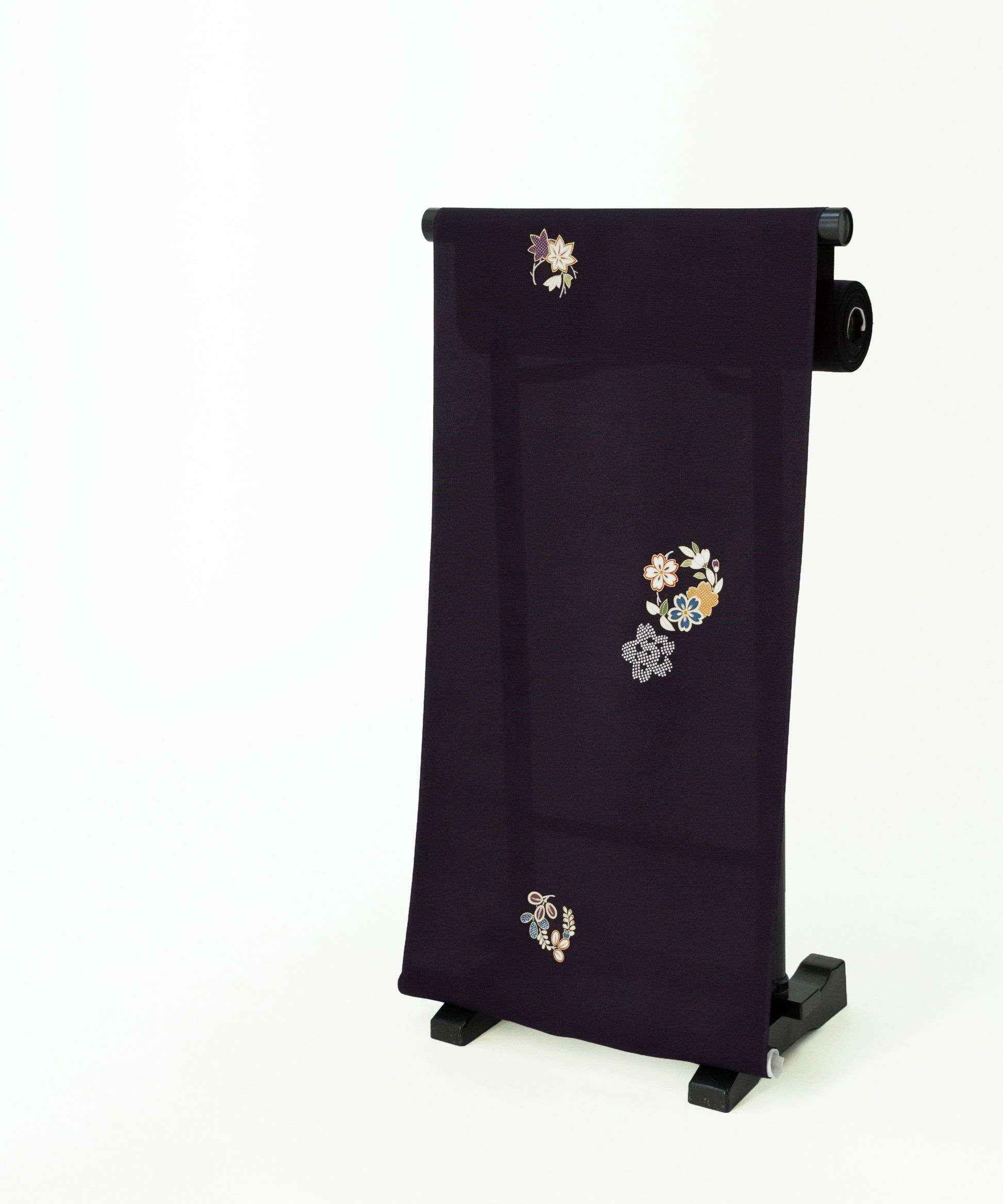 板場友禅飛び柄小紋「紫紺の地色に四季の花」