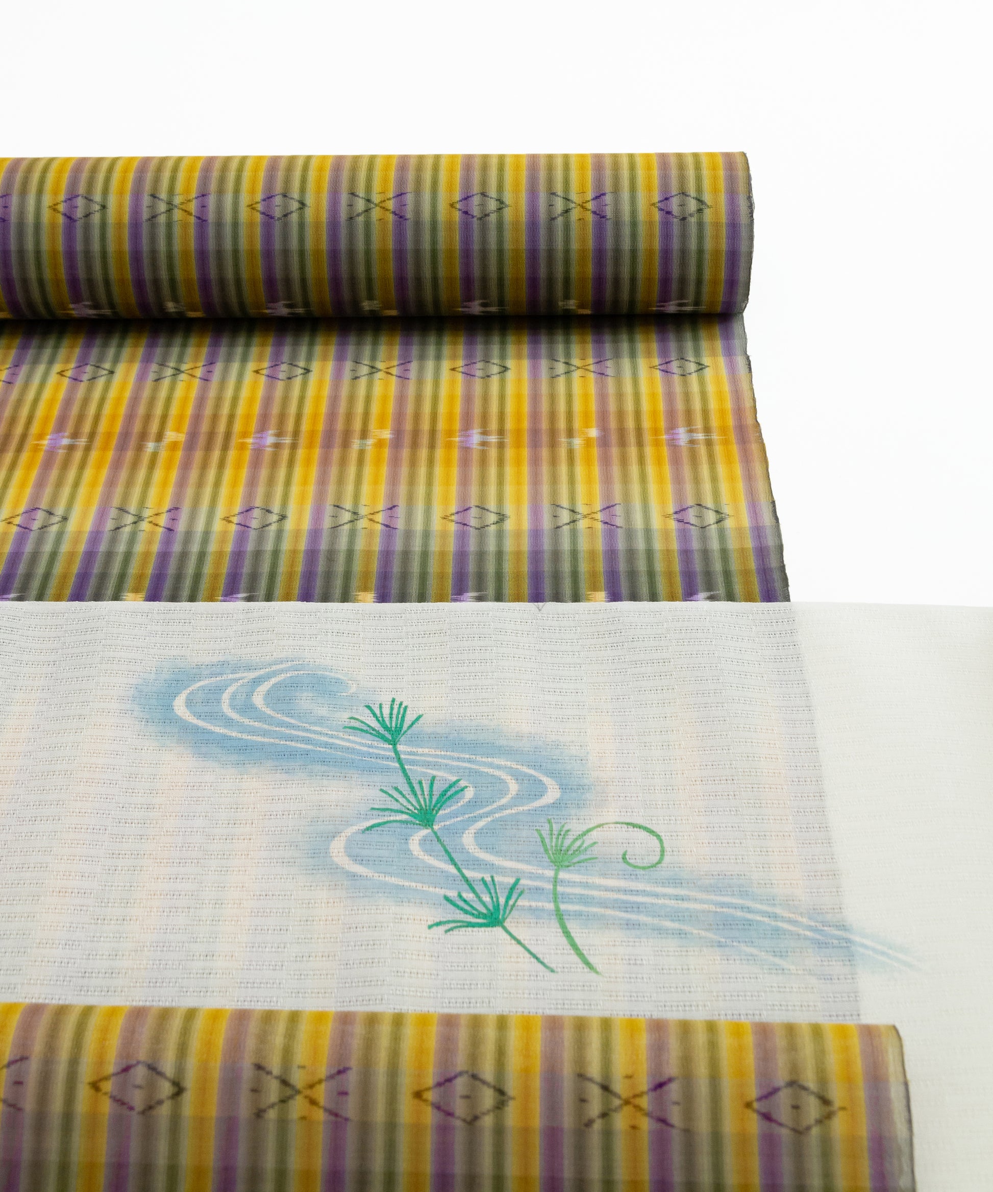 大城進さん(大城誠光織物工房)が手がける夏の琉球かすり「壁上布」着尺のご紹介です。