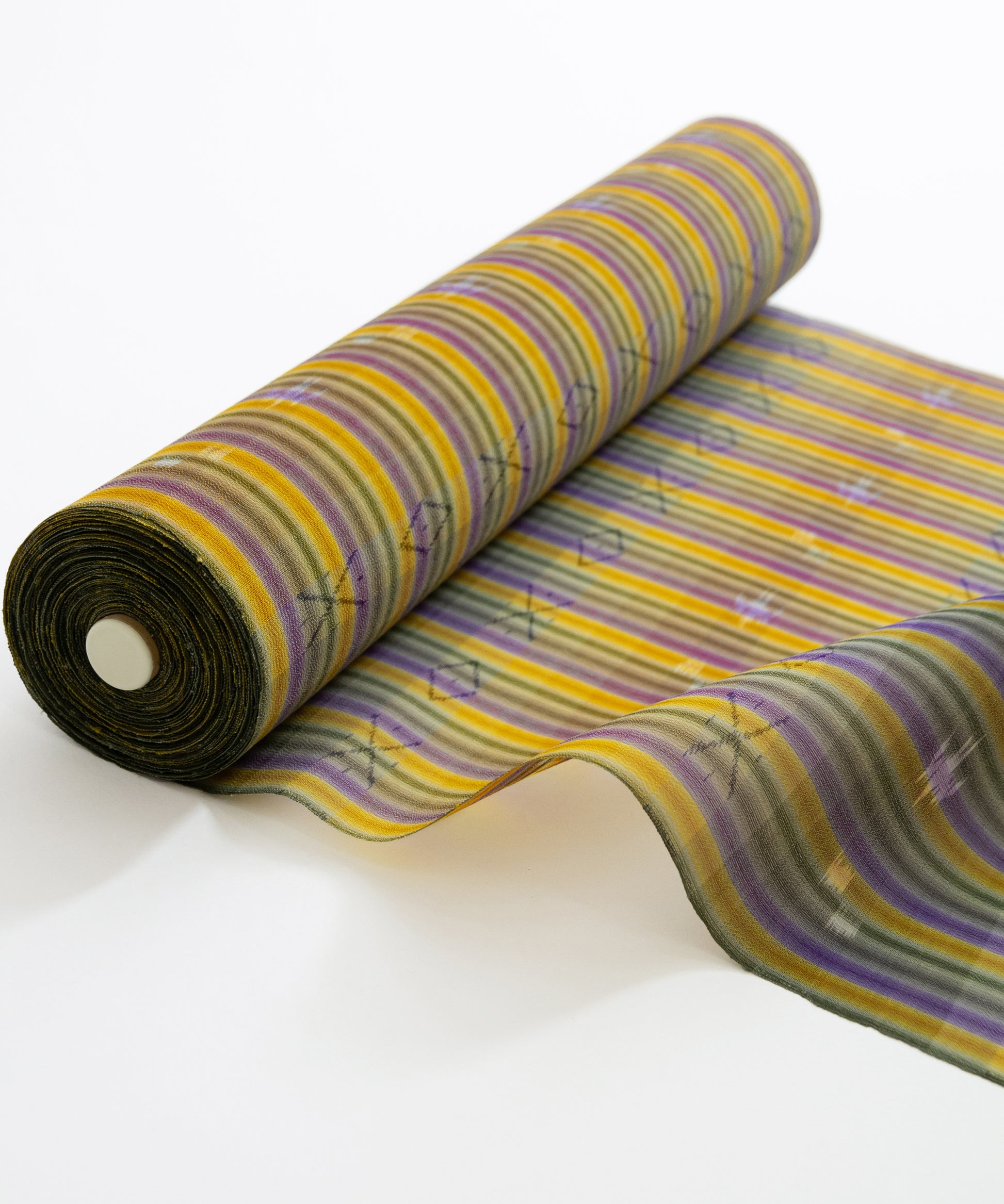 また、一目で大城進さんの作品だと分かるほどデザインと色彩もこちらの壁上布の魅力の一つです。黄色と紫色の配色がとても綺麗で個性も楽しめる作品です。