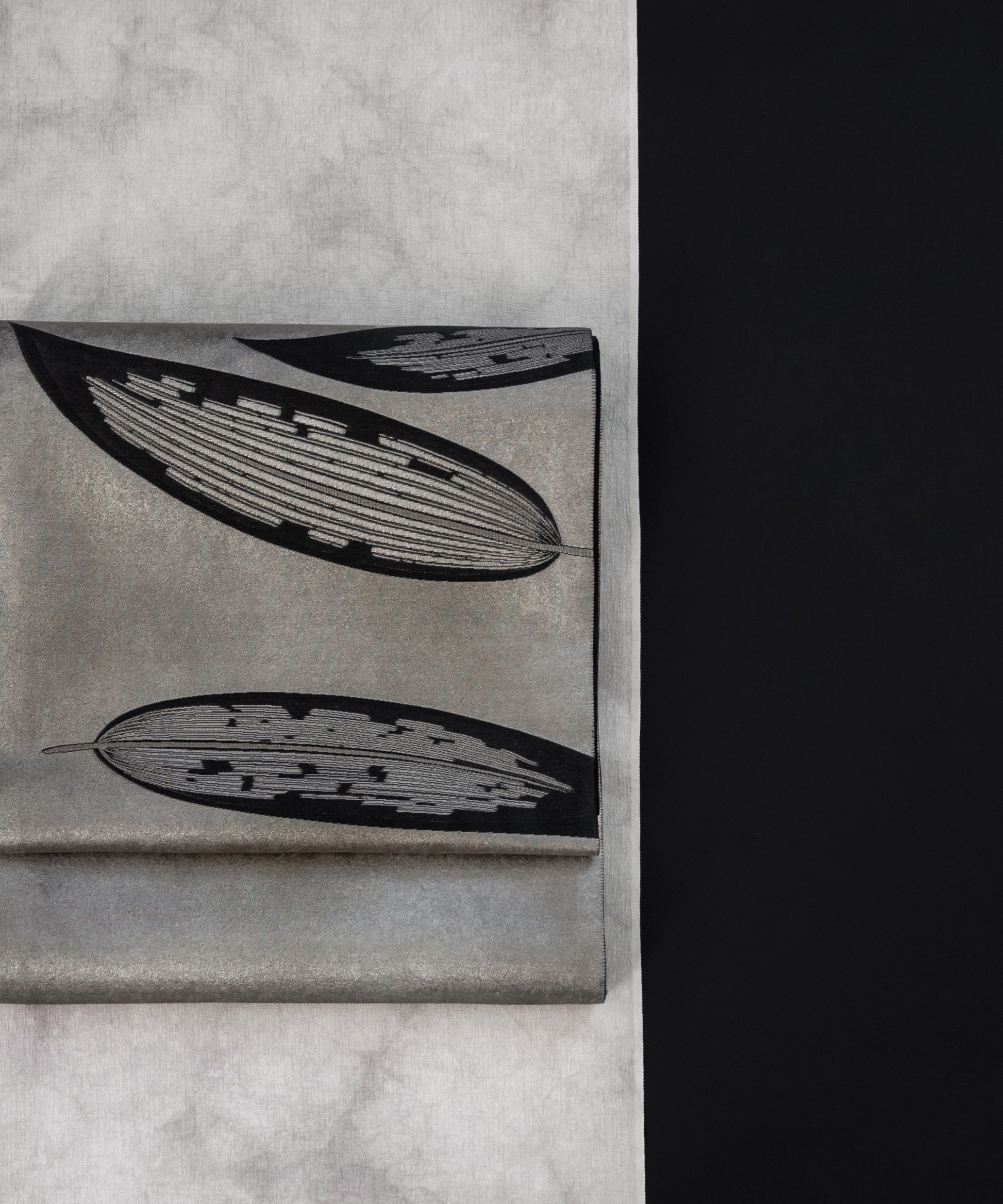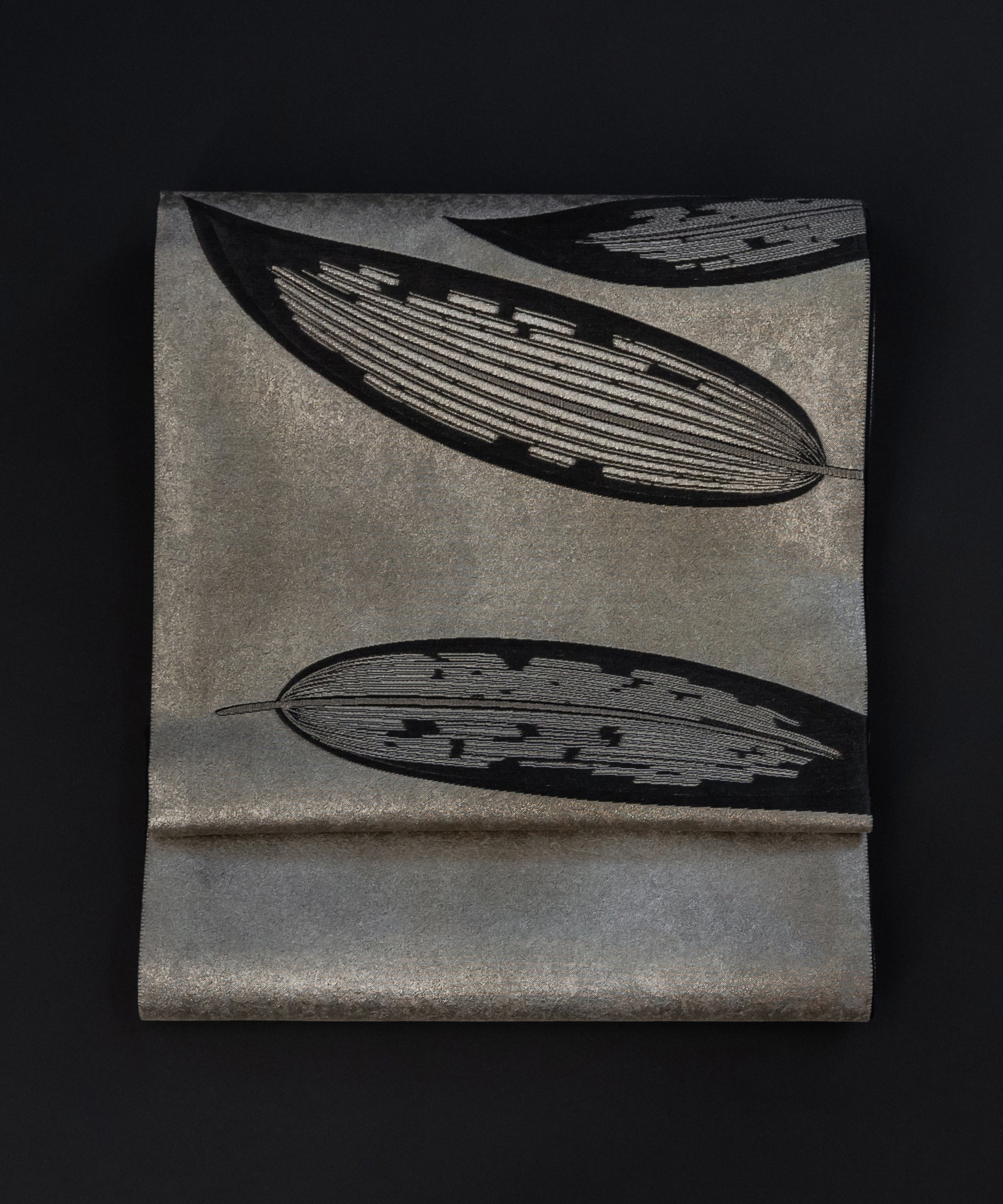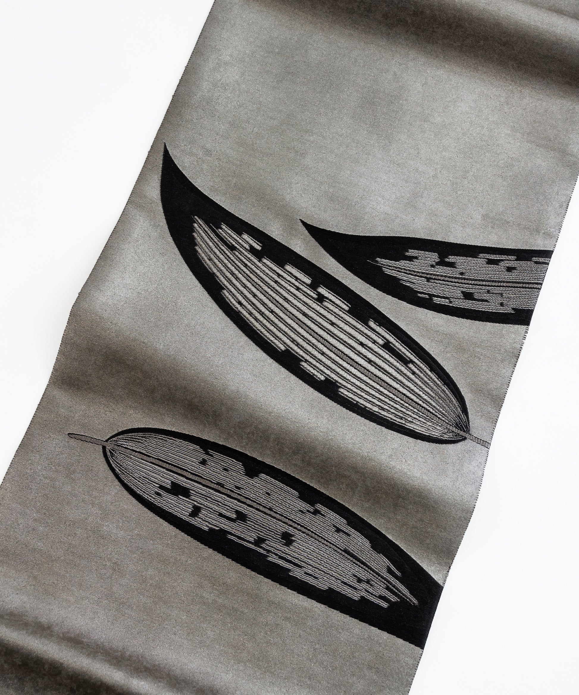 この摺箔の中にシンプルに、上品に織られた韮山笹。眺めているだけで力強さと存在感に圧倒されてしまいます。