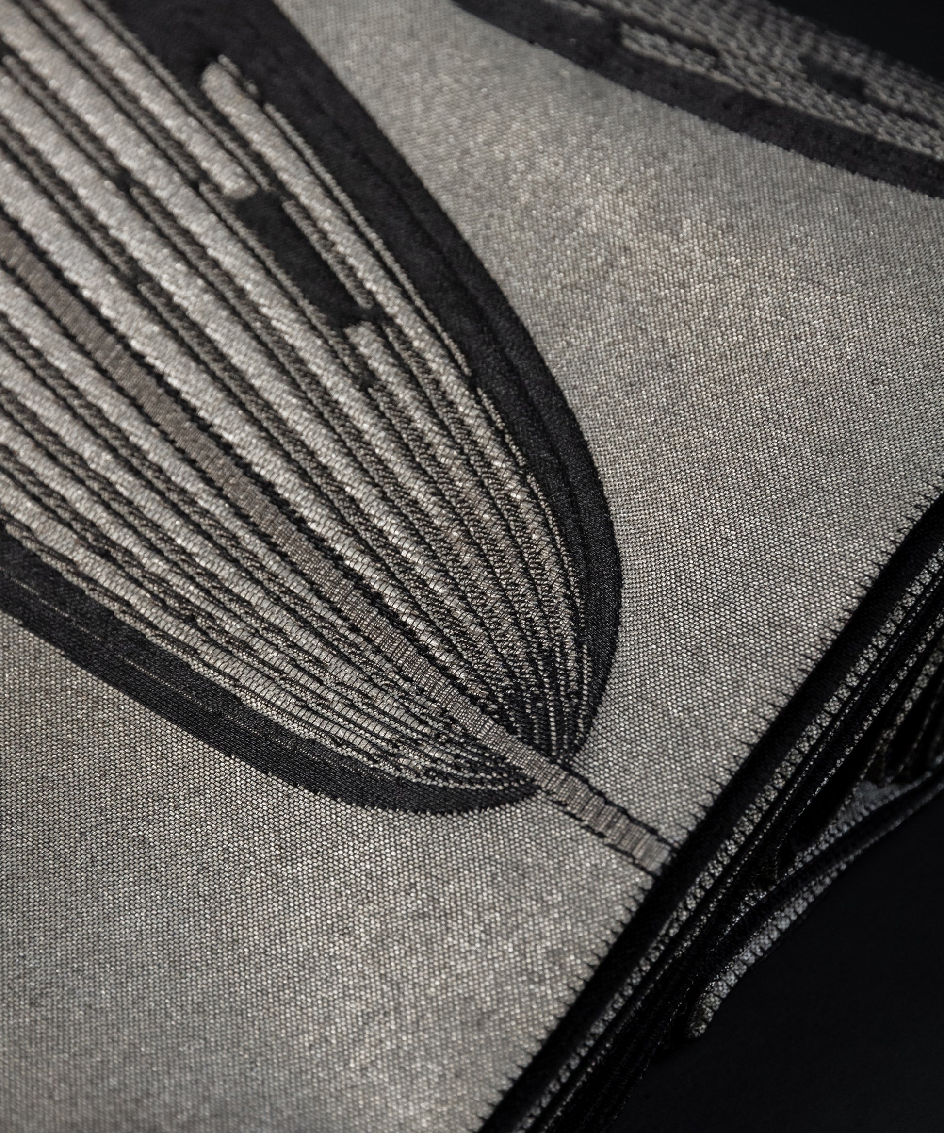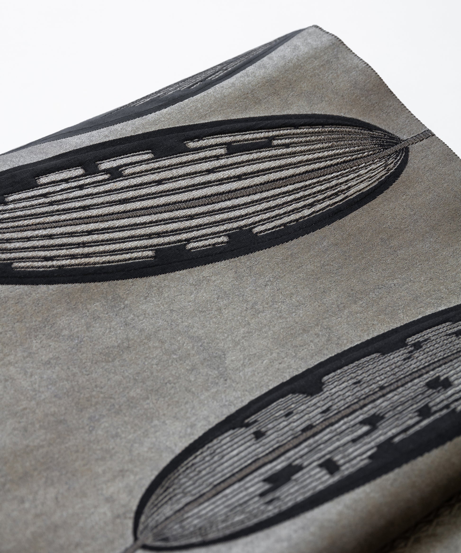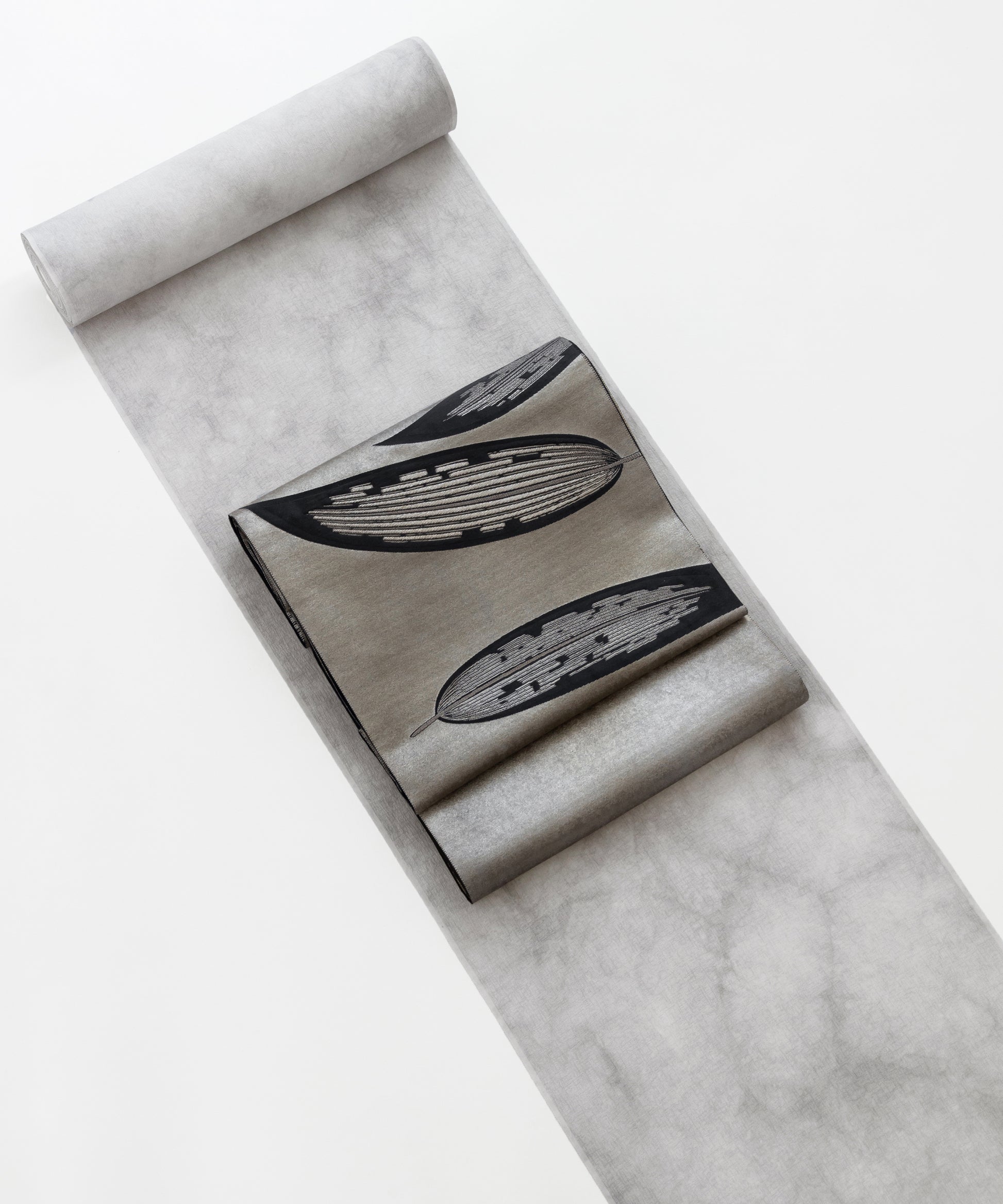 この摺箔の中にシンプルに、上品に織られた韮山笹。眺めているだけで力強さと存在感に圧倒されてしまいます。