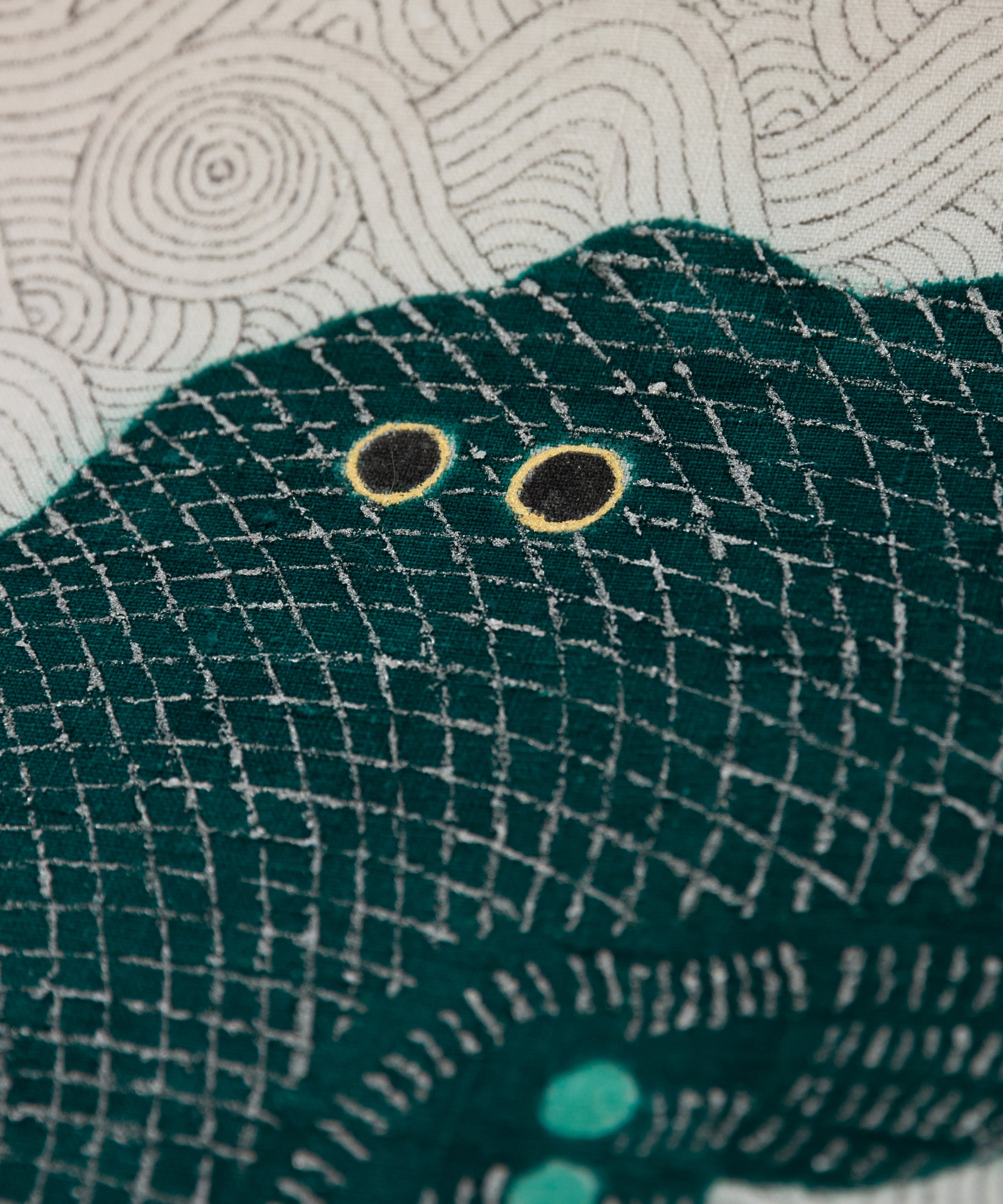小太郎の絵も細かな波の線までも型を使わずにすべて京都の職人さんによる手描きで制作された逸品でございます。硬派な洒落帯も得意とする誉田屋さんですが、小太郎の様に遊び心いっぱいの可愛らしい作品も思いつく、源兵衛さんの振り幅の広さに感嘆します。