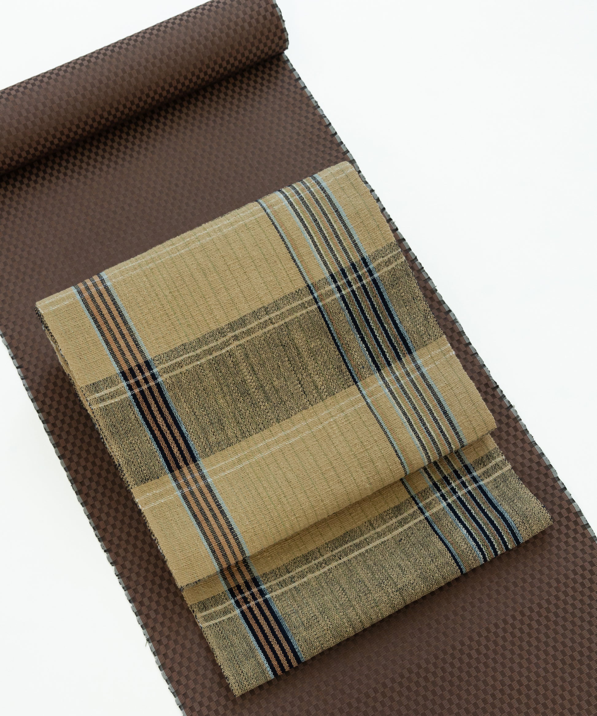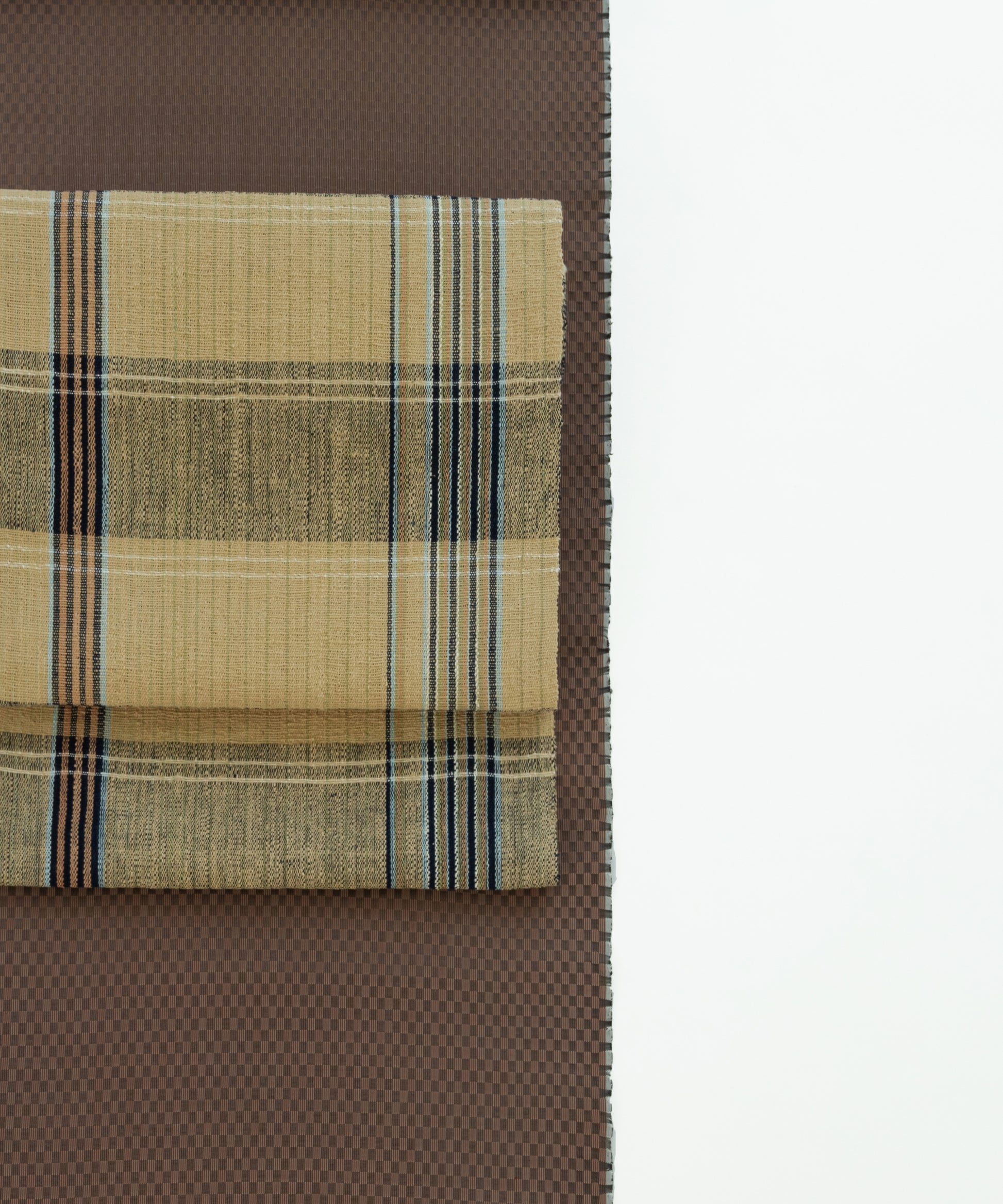 めゆ工房山下芙美子黄八丈綾織市松「焦げ茶」(3-4枚目)、