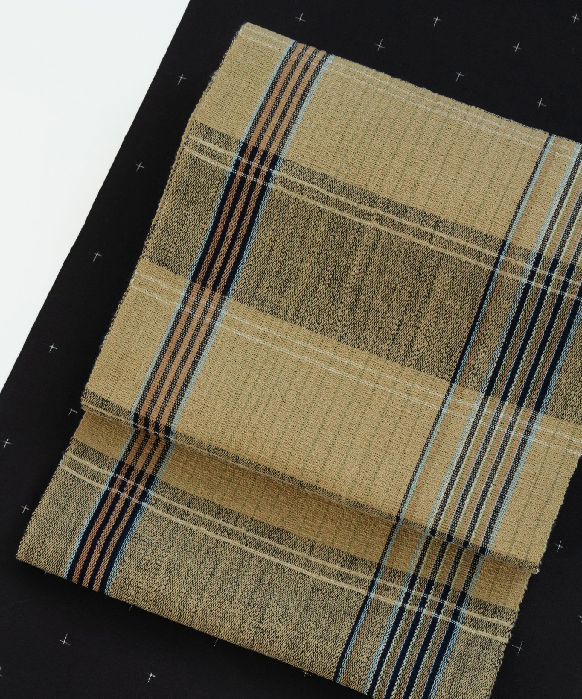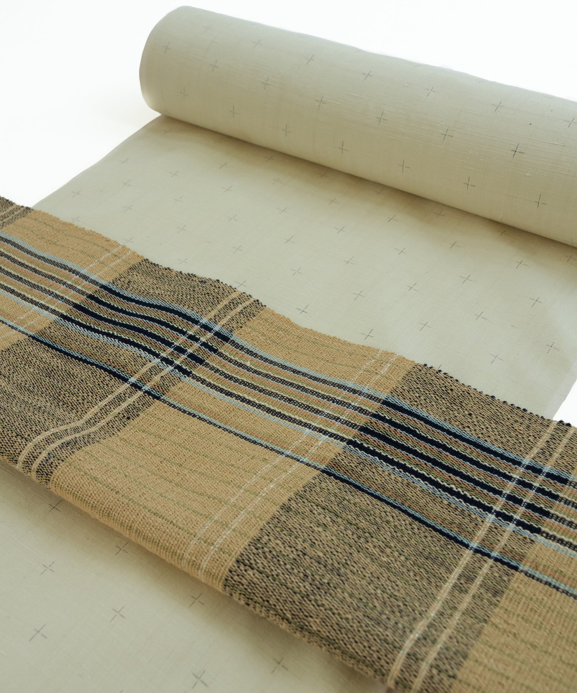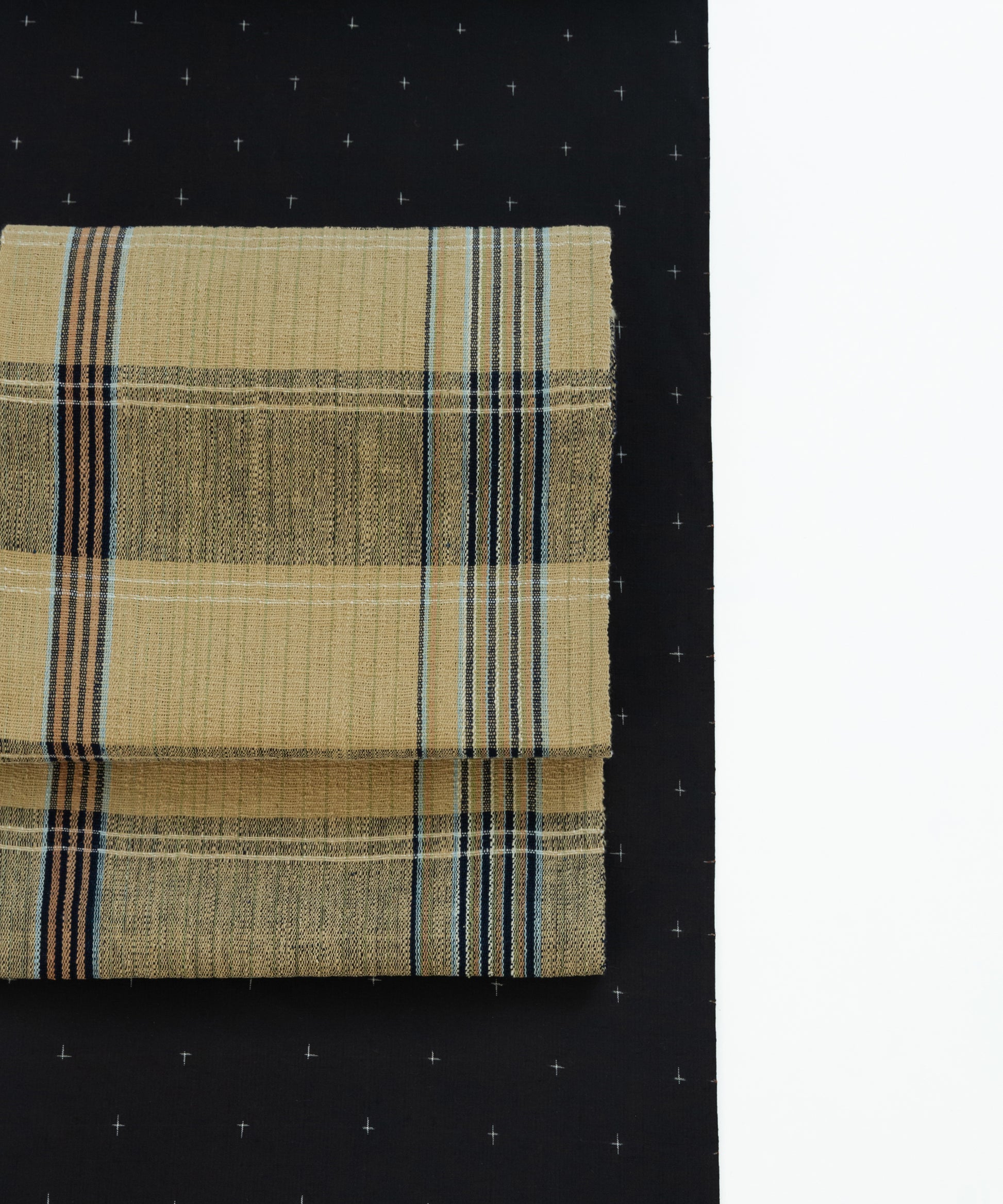 misakoshopより、十日町紬「黒に白の十字絣」(5-6枚目)