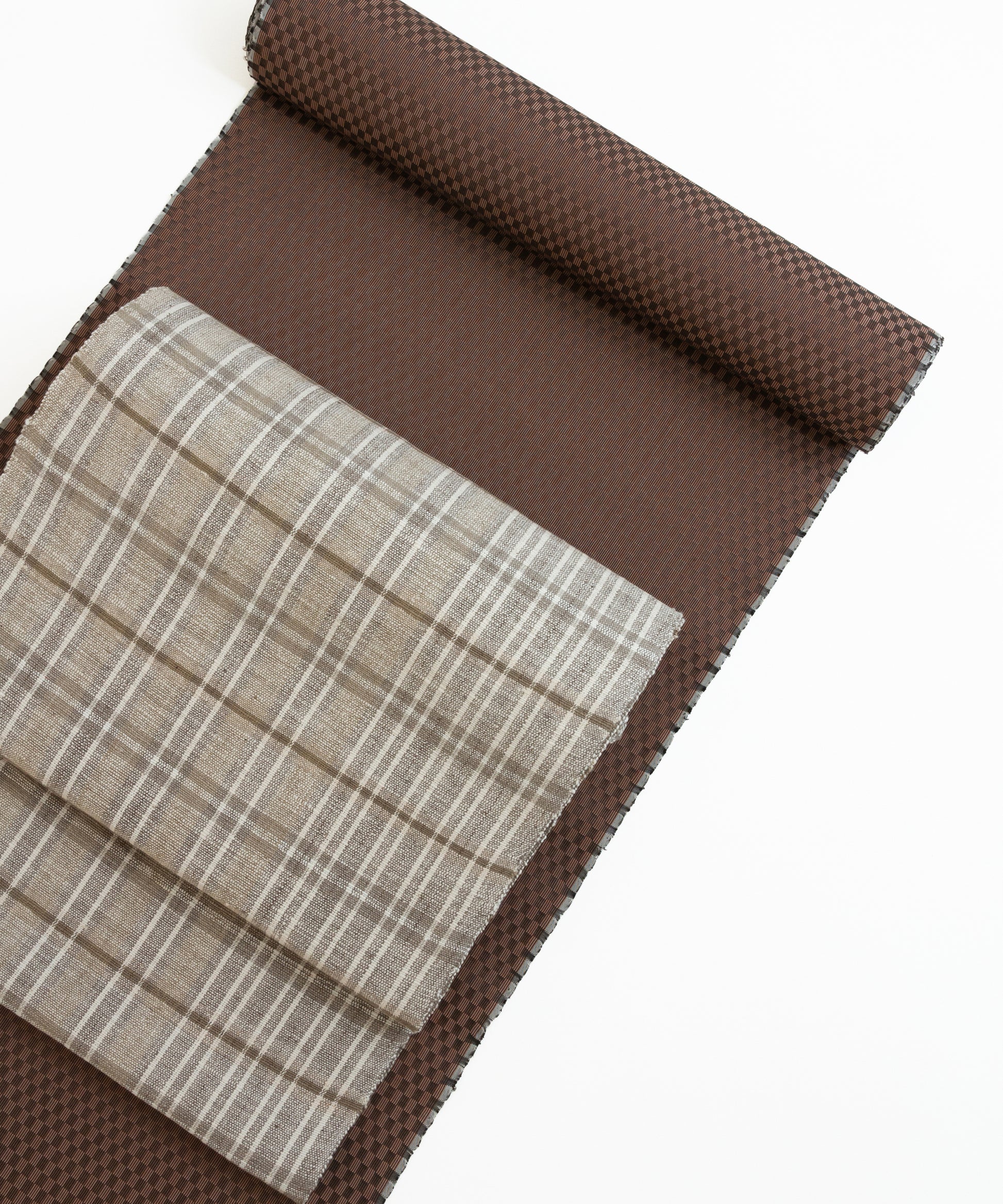 めゆ工房山下芙美子黄八丈綾織市松「焦げ茶」(3-5枚目)、