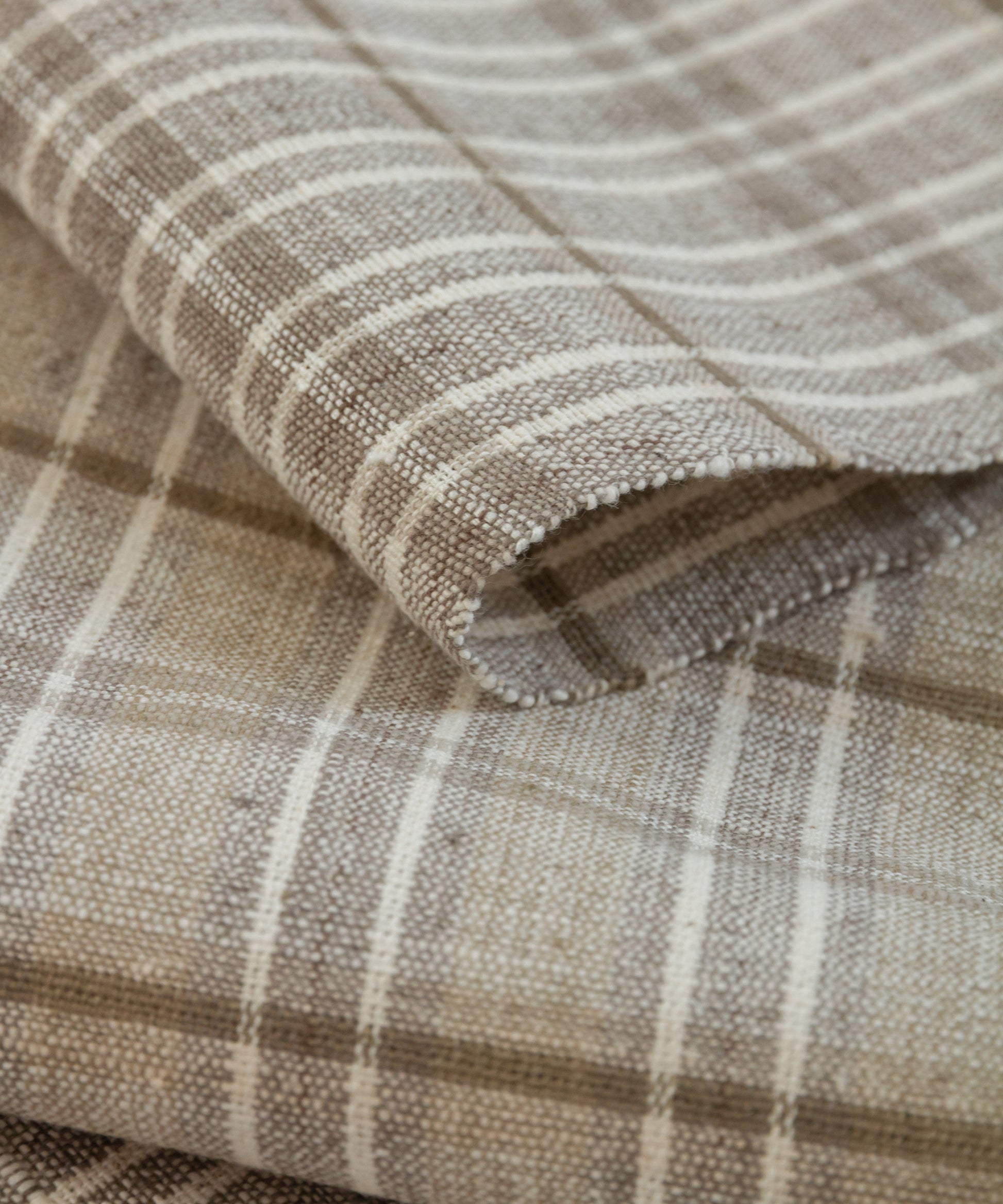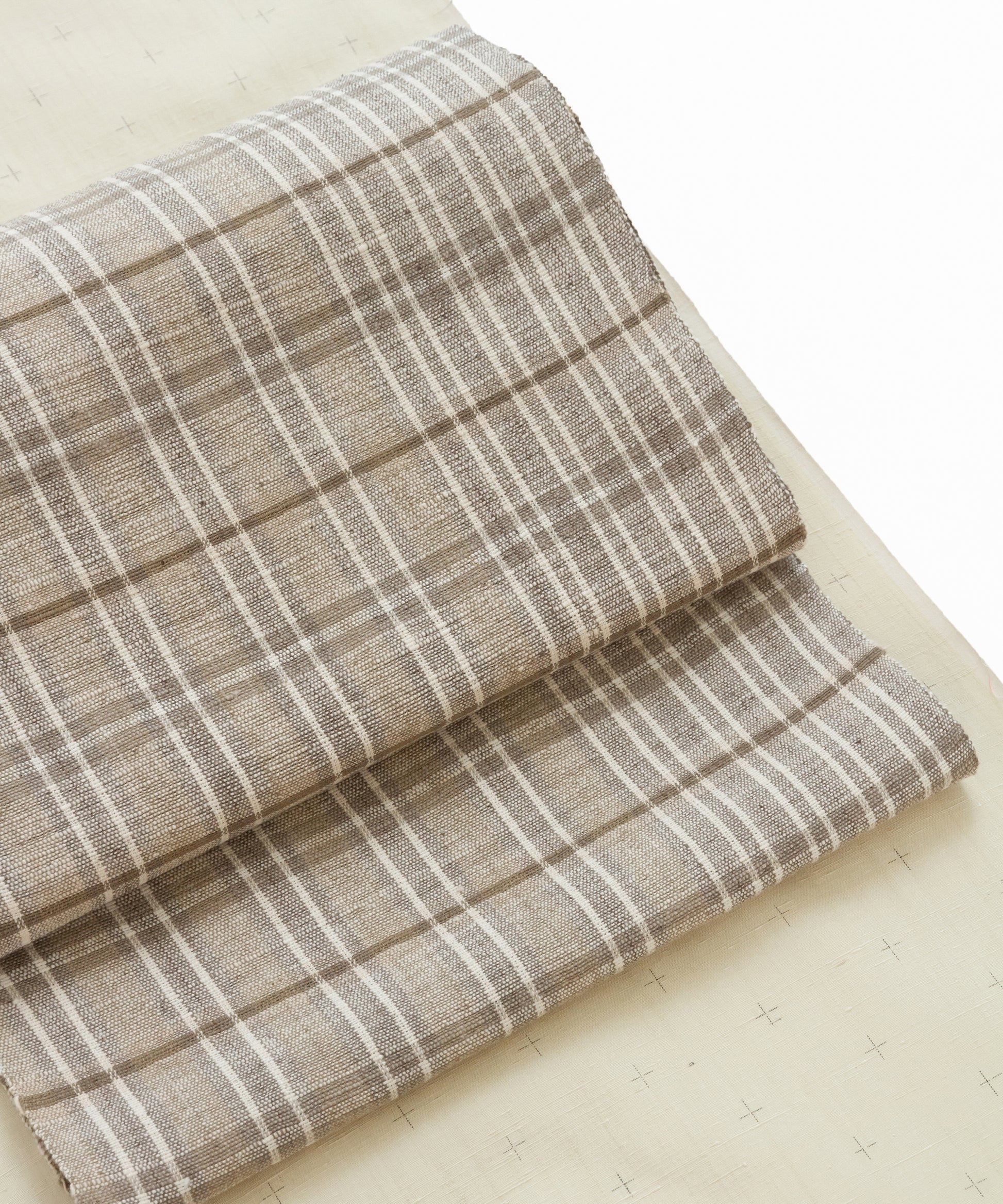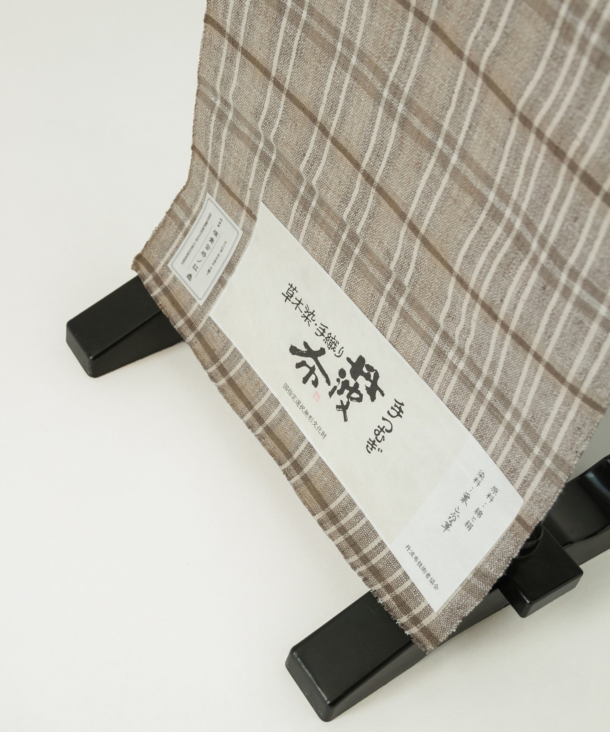 丹波布は昔ながらの技法で手紡ぎ、草木染め、手織りとすべての工程を一人の手作業で作られ、絹のつまみ糸を緯糸に入れます。このつまみ糸により、しなやかさと柄の表情にもつややかさが生まれます。