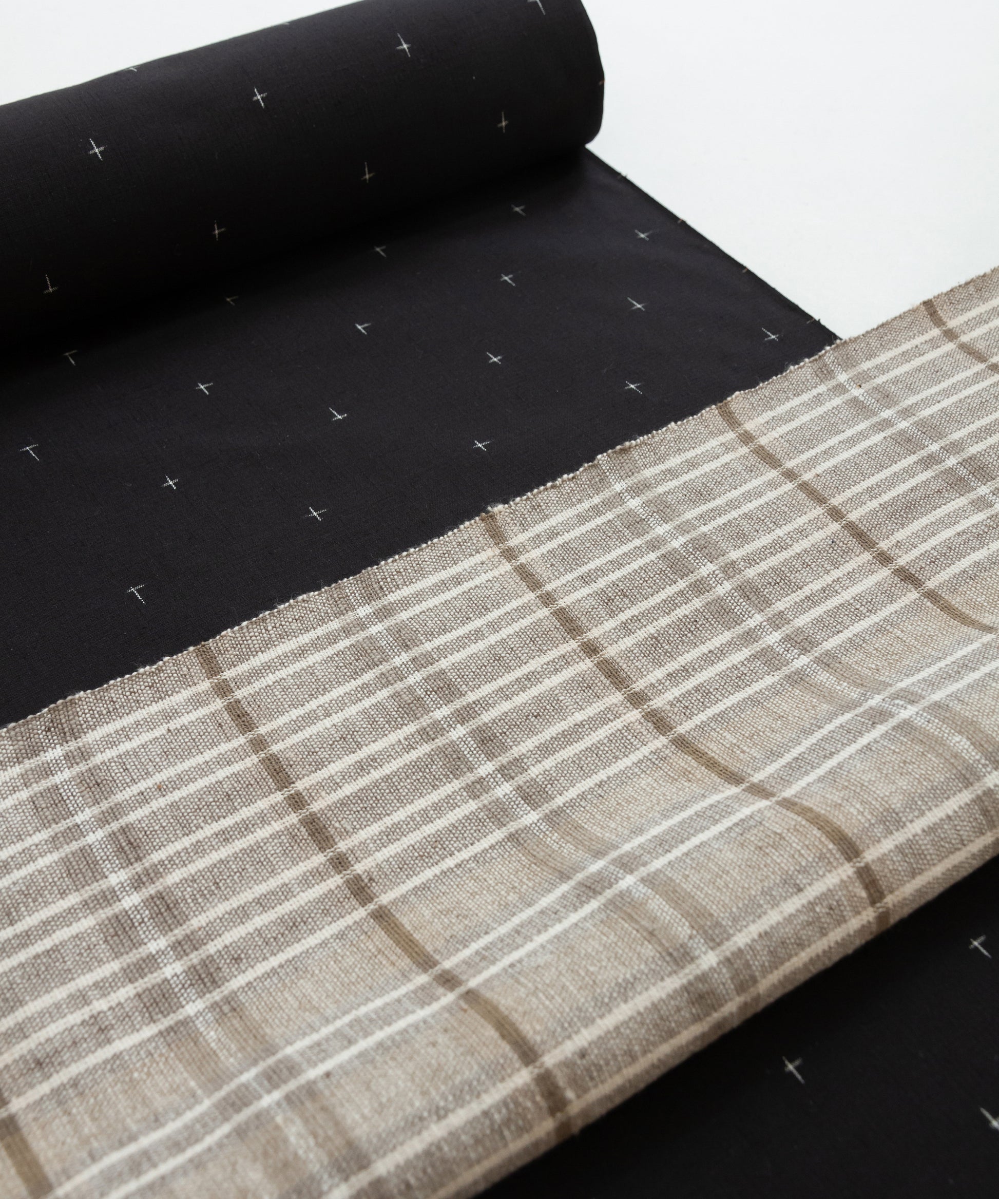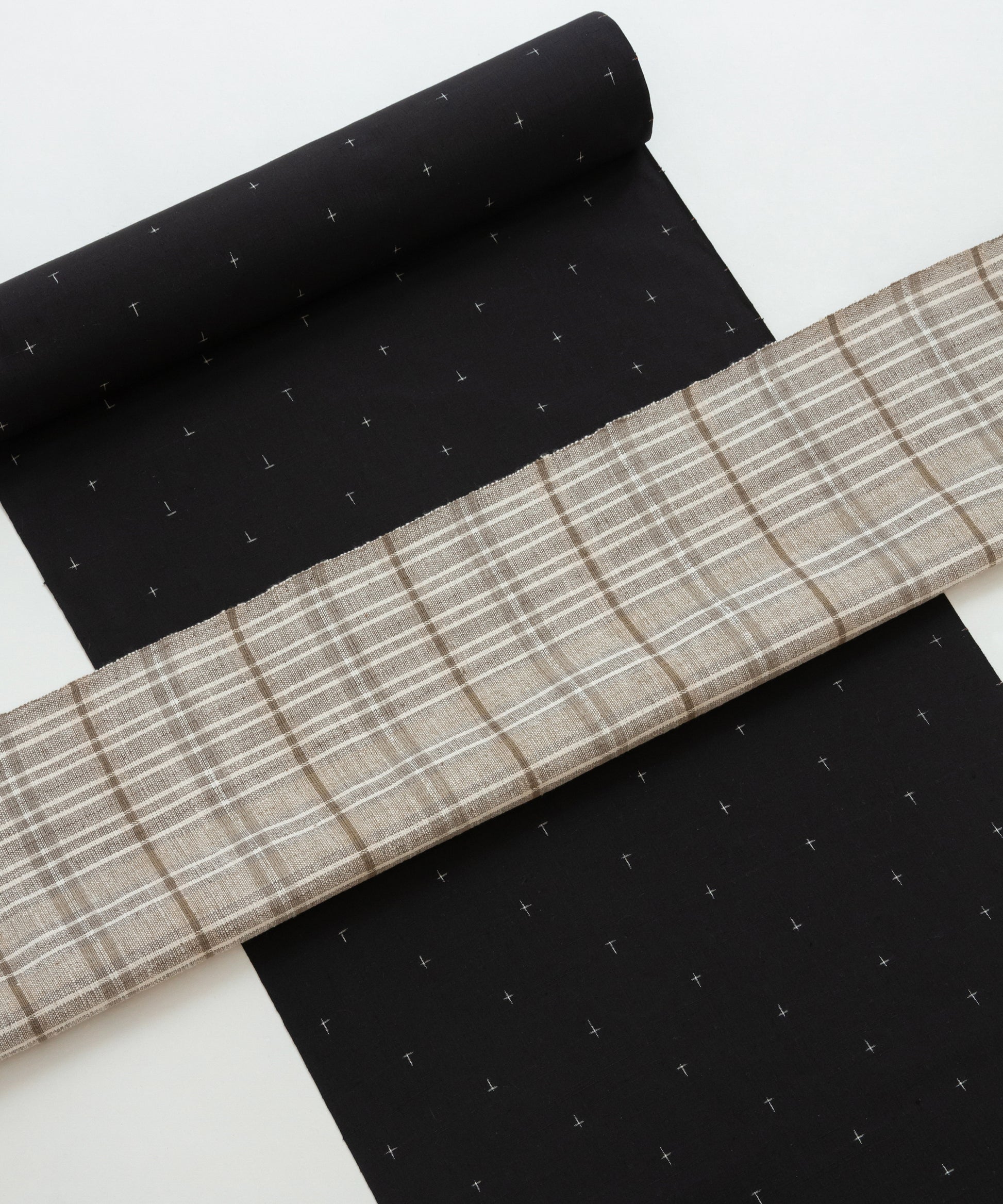 misakoshopより、十日町紬「黒に白の十字絣」(9-10枚目)